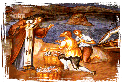 ψάρεμα. Ο Άγιος, θέλοντας να τους συνετίσει τους υπέδειξε που να ρίξουν