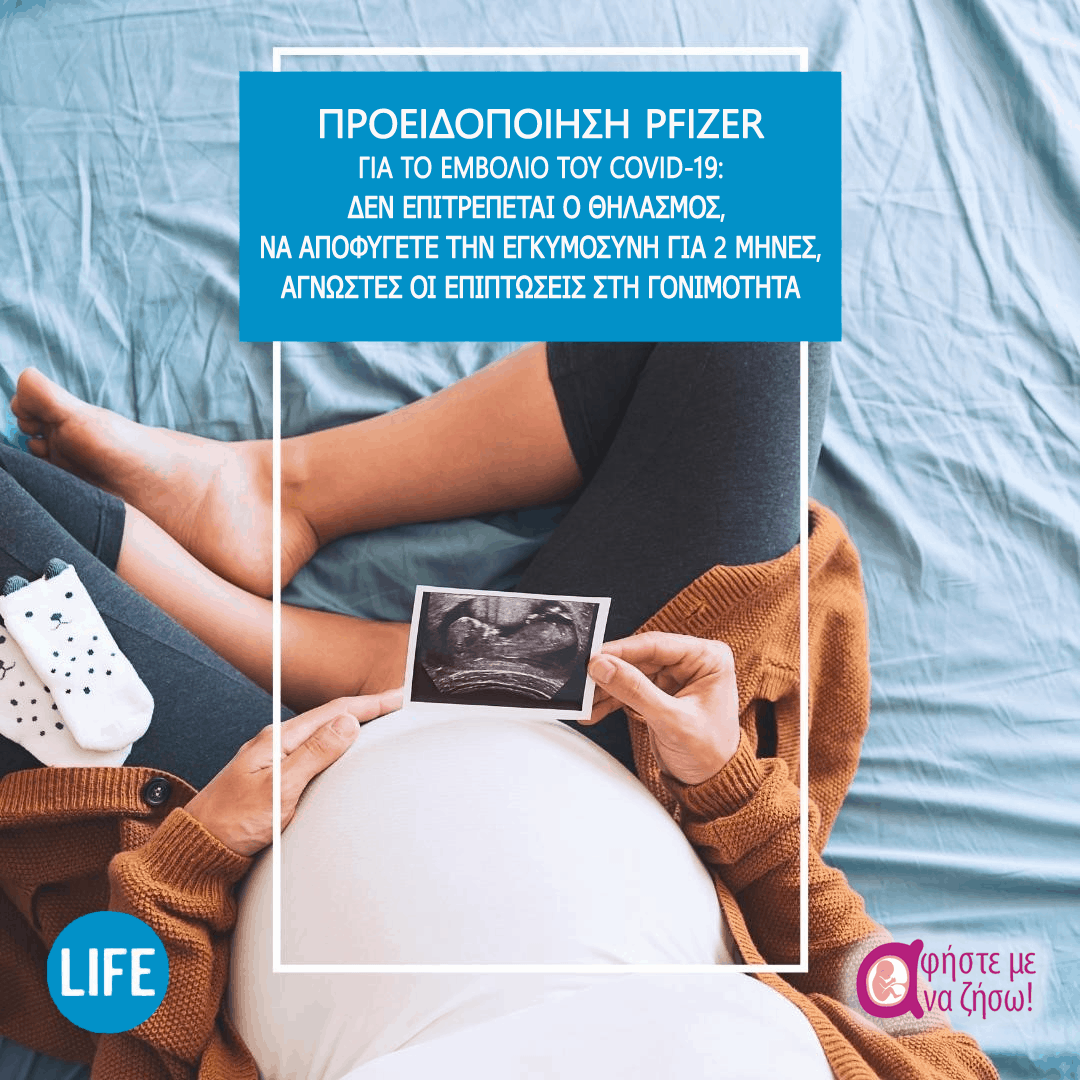 «Είναι άγνωστο εάν το εμβόλιο COVID-19 mRNA BNT162b2 έχει αντίκτυπο στη γονιμότητα», αναφέρει.