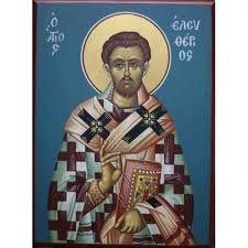 Καὶ τρόπων μέτοχος, καὶ θρόνων διάδοχος, τῶν Ἀποστόλων γενόμενος, τὴν πρᾶξιν εὗρες θεόπνευστε, εἰς θεωρίας ἐπίβασιν· διὰ τοῦτο τὸν λόγον τῆς ἀληθείας ὀρθοτομῶν, καὶ τῇ πίστει ἐνήθλησας μέχρις αἵματος, Ἱερομάρτυς Ἐλευθέριε· Πρέσβευε Χριστῷ τῷ Θεῷ, σωθῆναι τὰς ψυχὰς ἡμῶν.